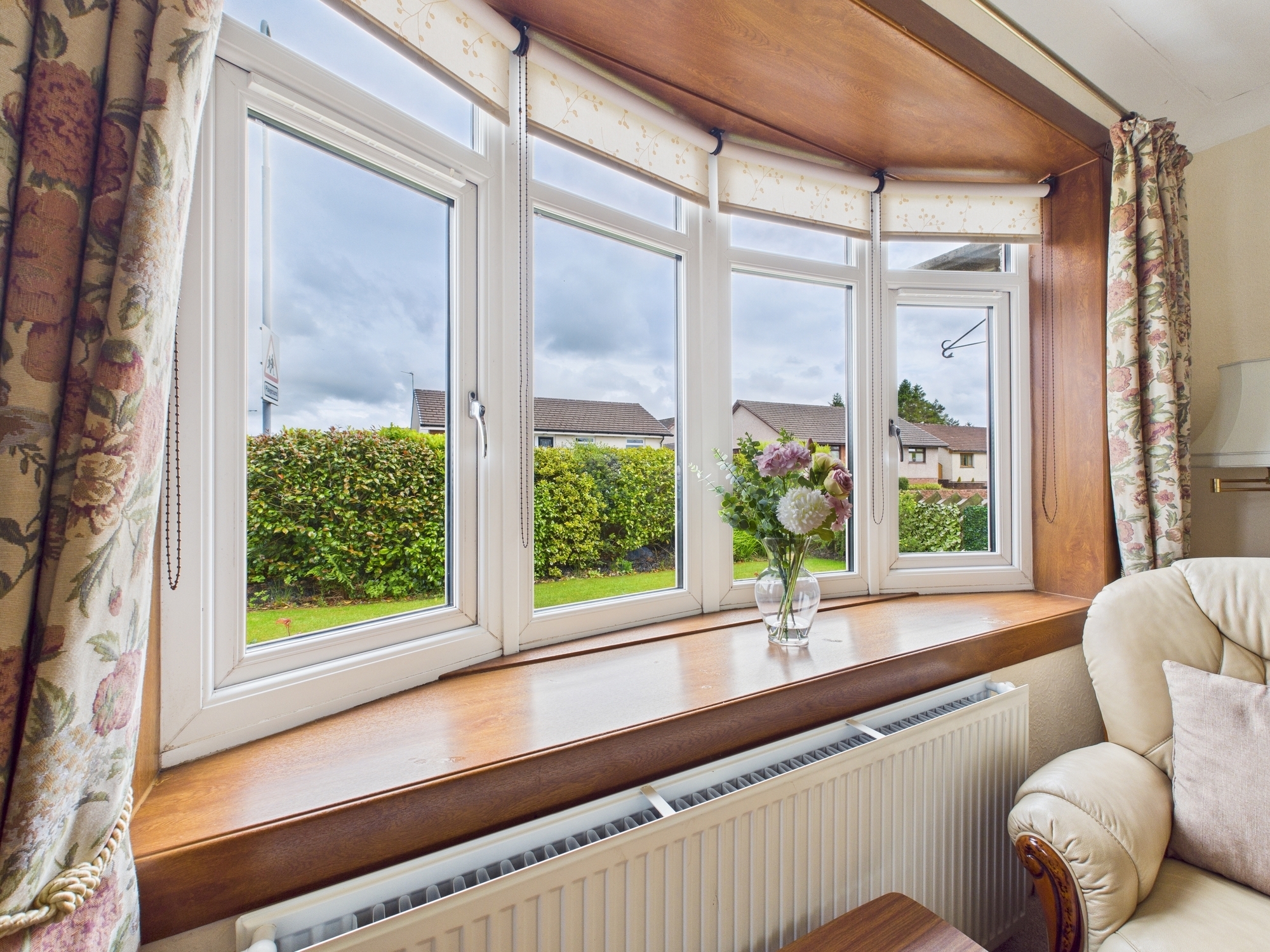 The property offers two well-proportioned double bedrooms, one of which features large fitted mirrored sliding wardrobes providing excellent storage. The second bedroom comfortably accommodates all freestanding furniture, making it a versatile and practical space. The third bedroom which can also serve as an additional sitting area provides direct access into the bright and spacious conservatory. This lovely sunlit space opens out to the rear garden creating a seamless flow between indoor and outdoor living.