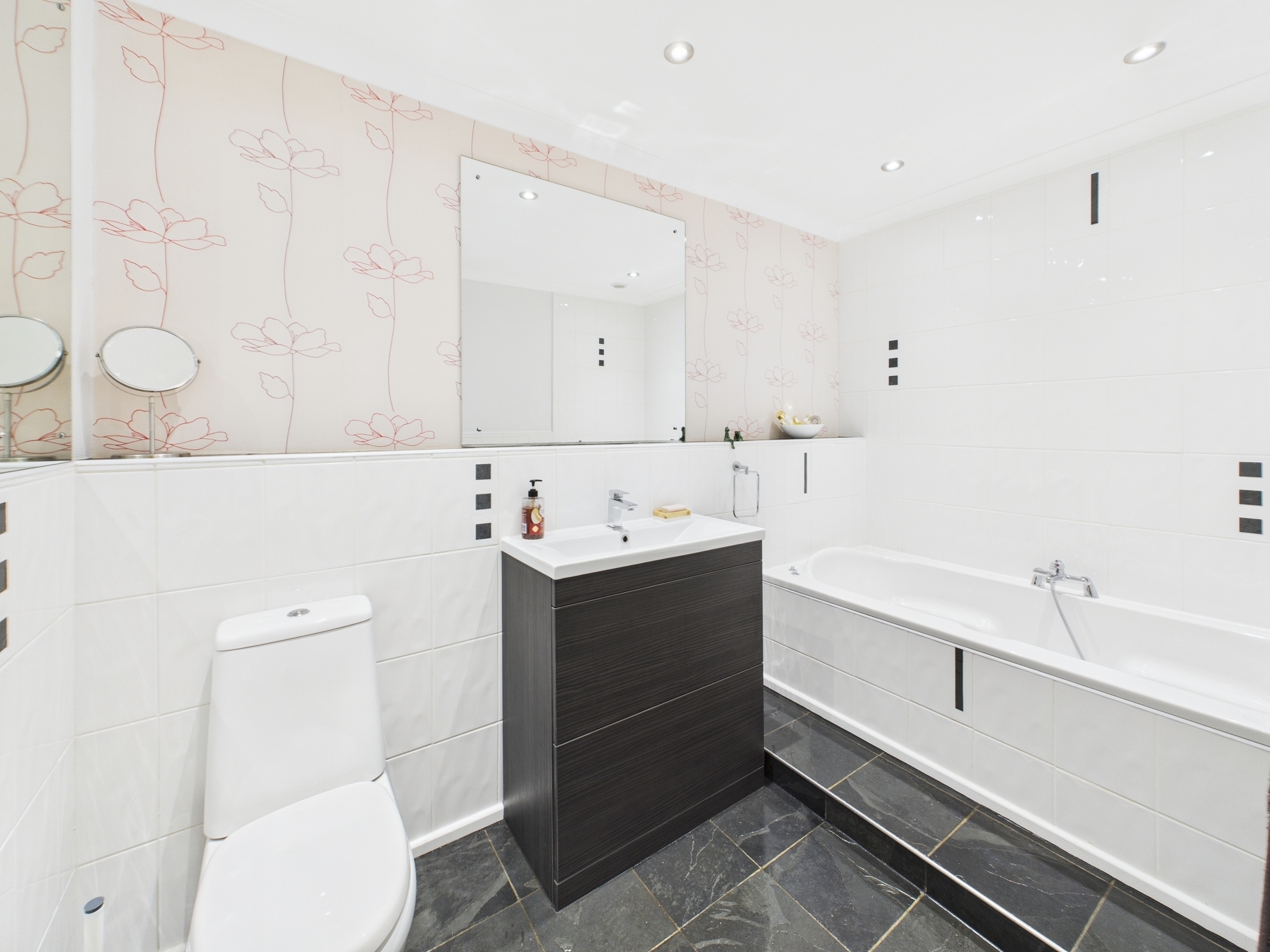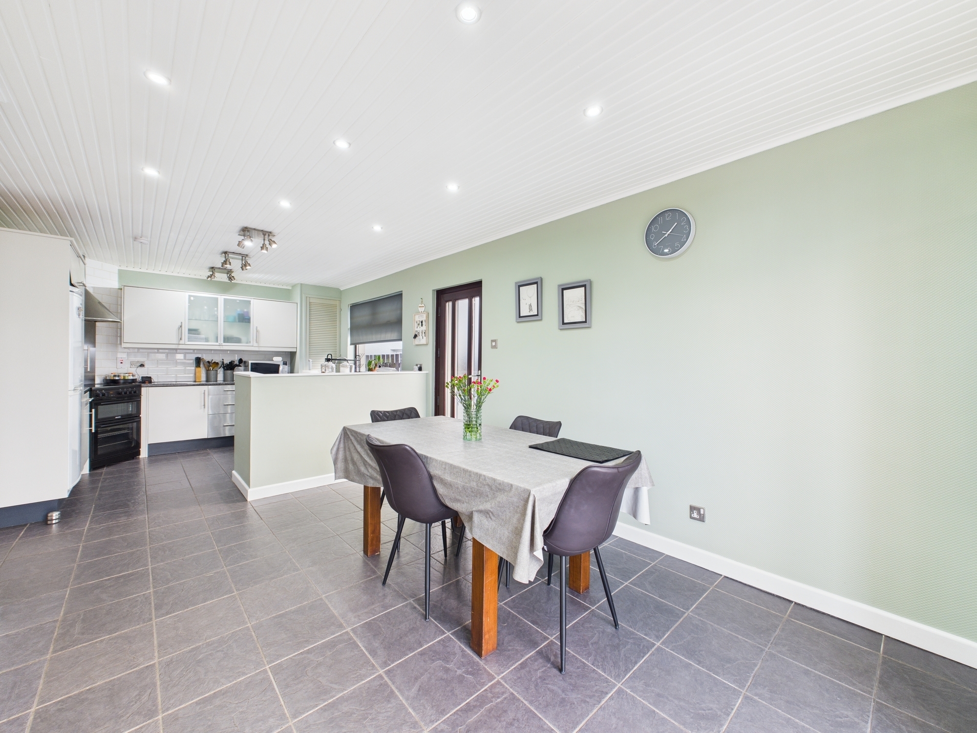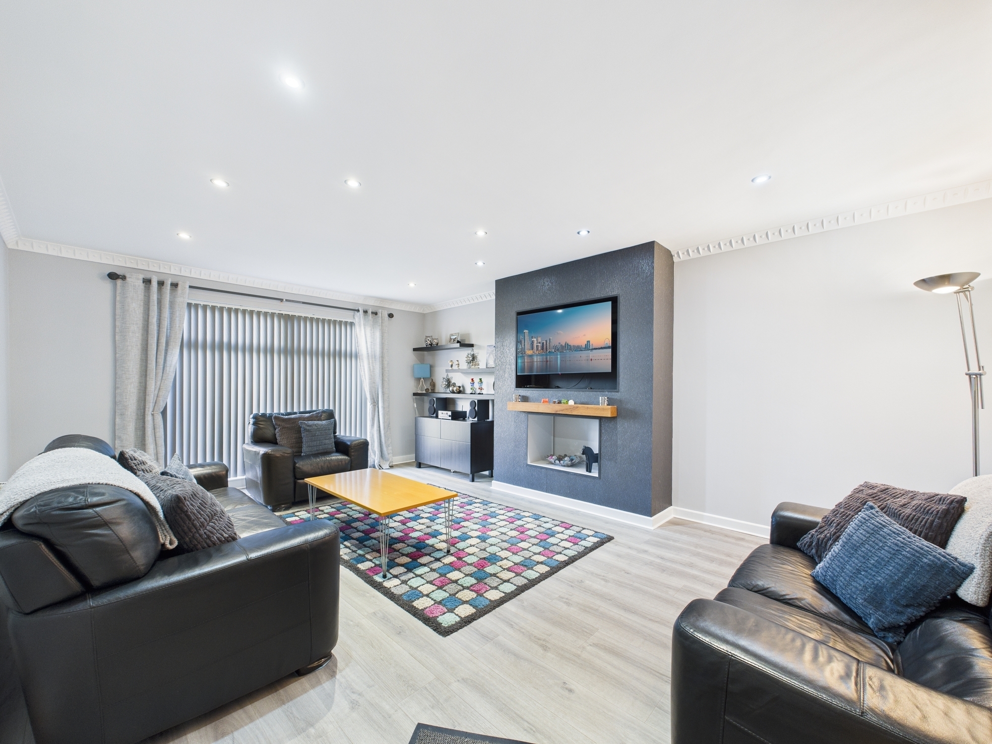 On entering, you are welcomed by a bright and spacious hallway providing access to all main apartments. The formal lounge boasts a stylish media wall, a large picture window allowing for an abundance of natural light, and ample space to accommodate a range of furniture. The modern fitted kitchen/diner features generous storage, space for white goods and a dedicated dining area ideal for family meals or entertaining.