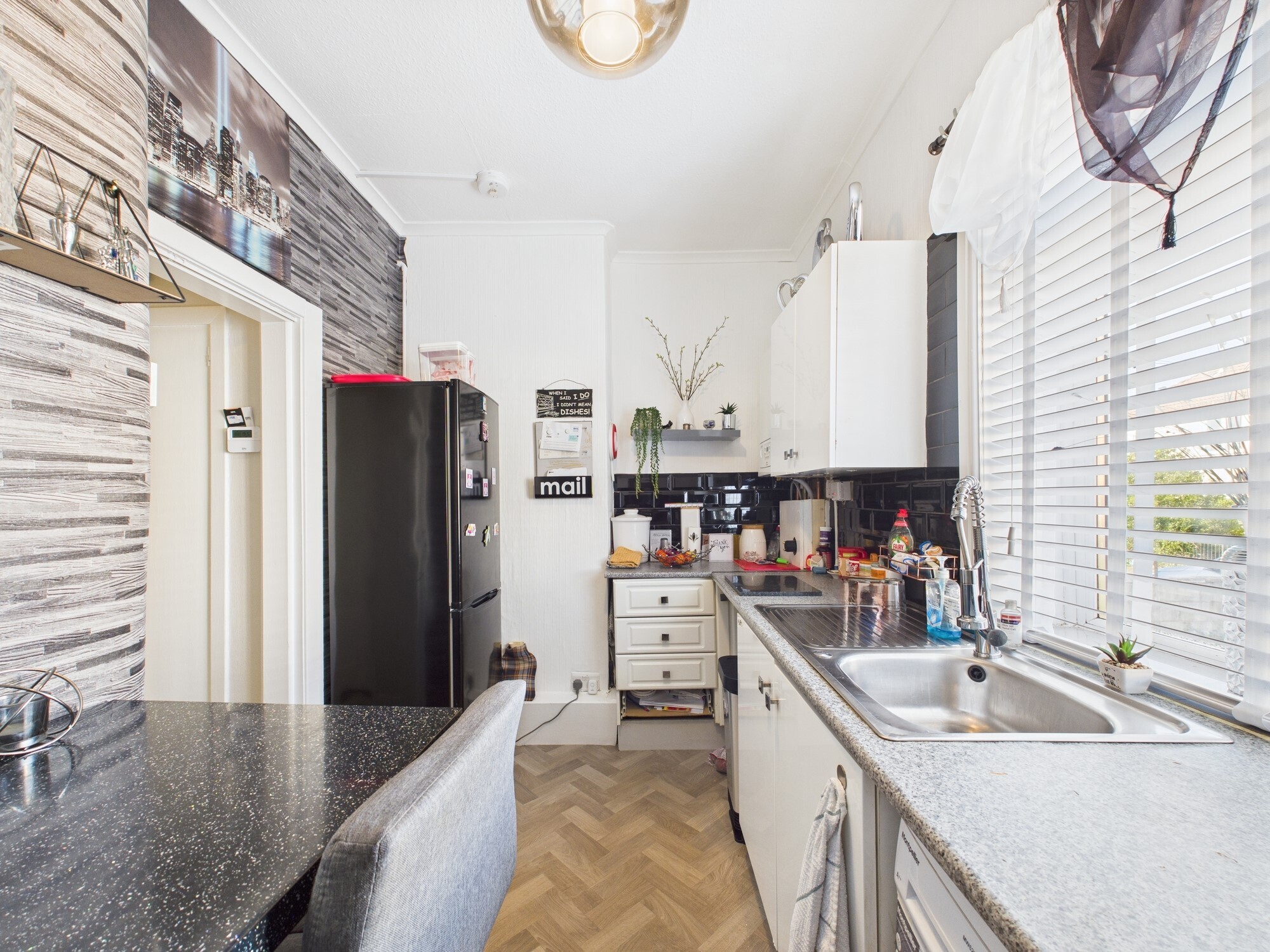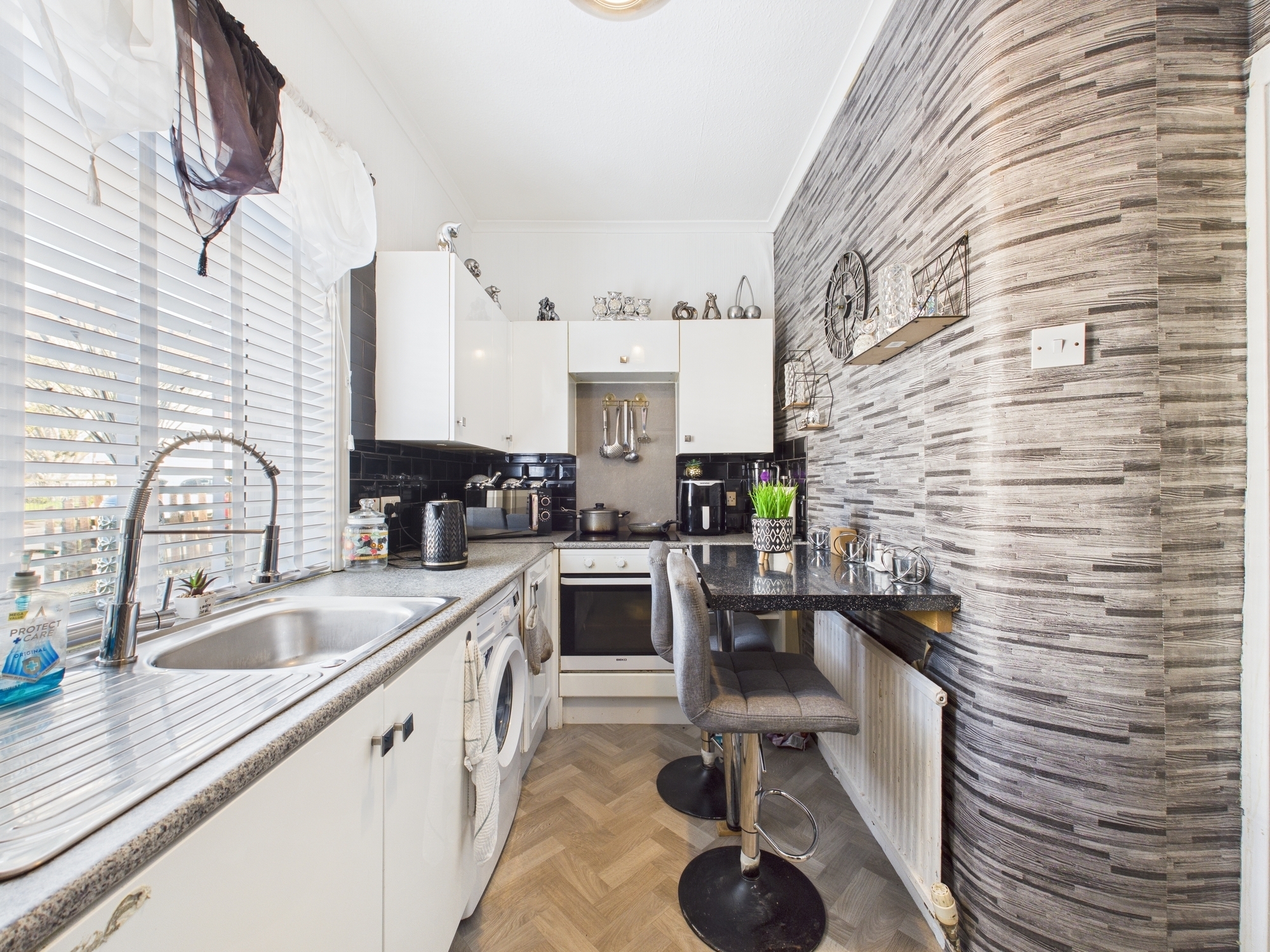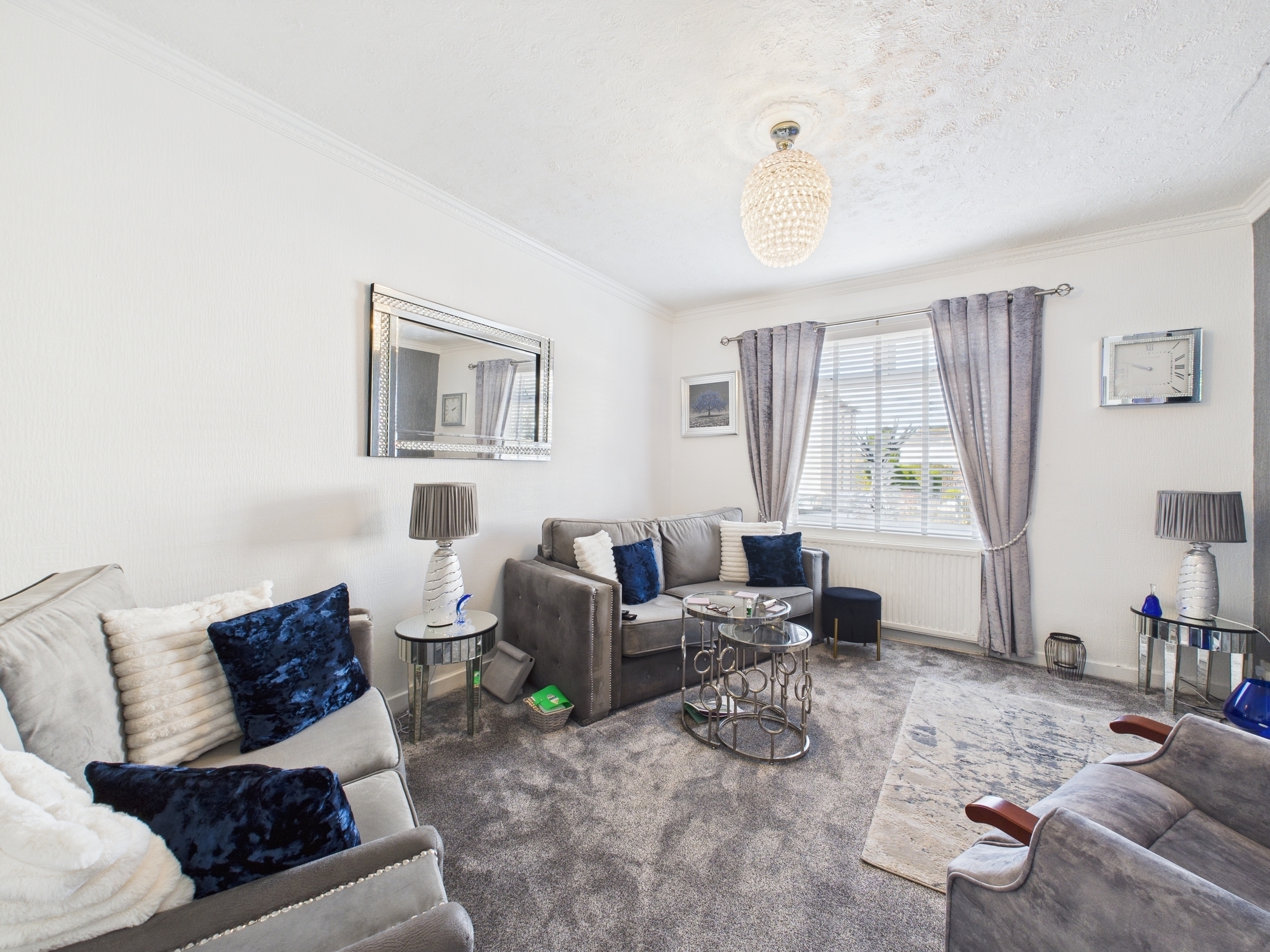The property features a spacious lounge, a modern fitted kitchen, two generously sized bedrooms and a well-appointed 3 piece bathroom suite in white.
